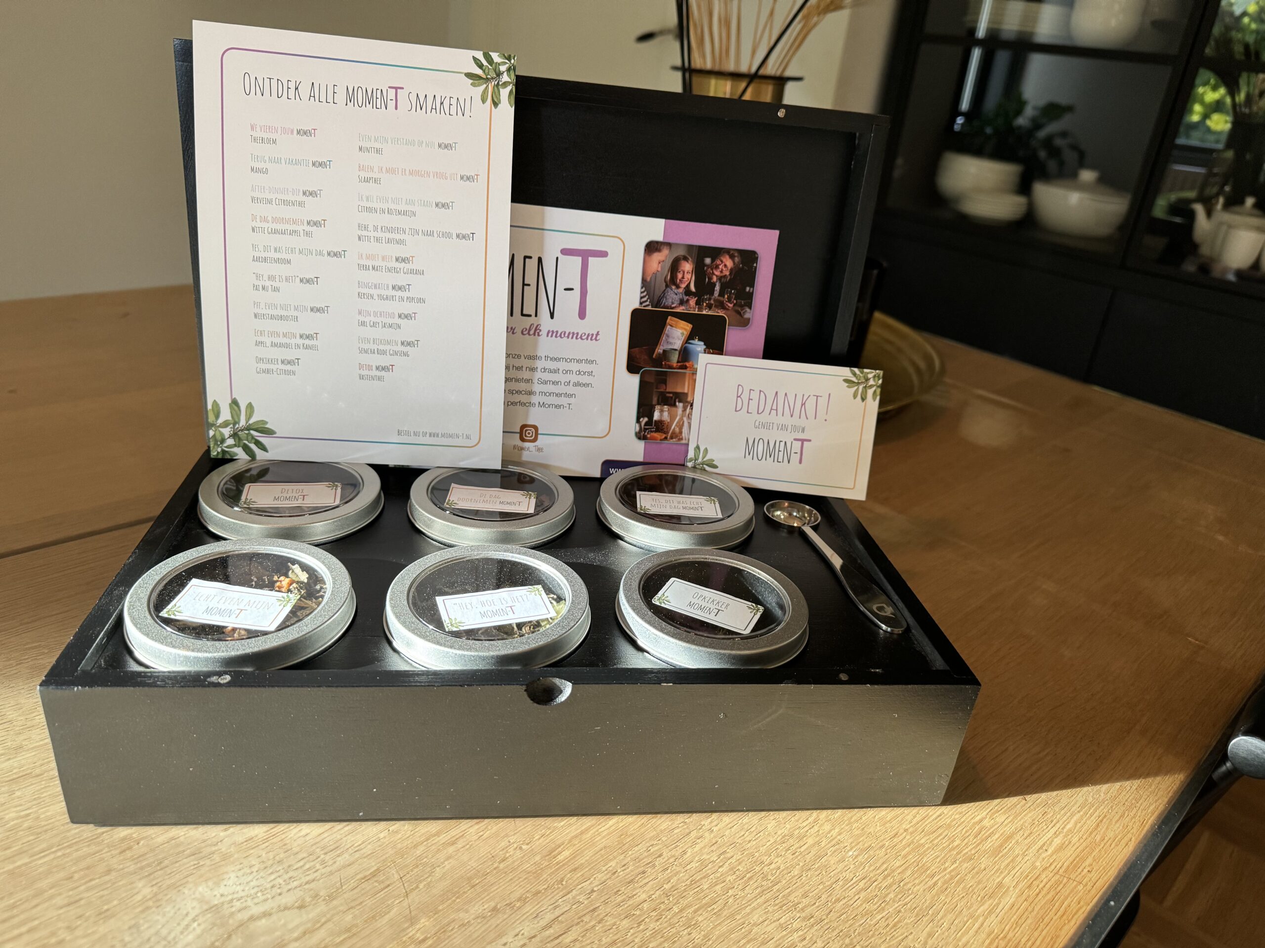 Naast horeca en relatiegeschenken biedt Momen-T ook mogelijkheden voor verkoop in winkels en speciaalzaken. Denk aan een stijlvolle theeselectie in jouw: